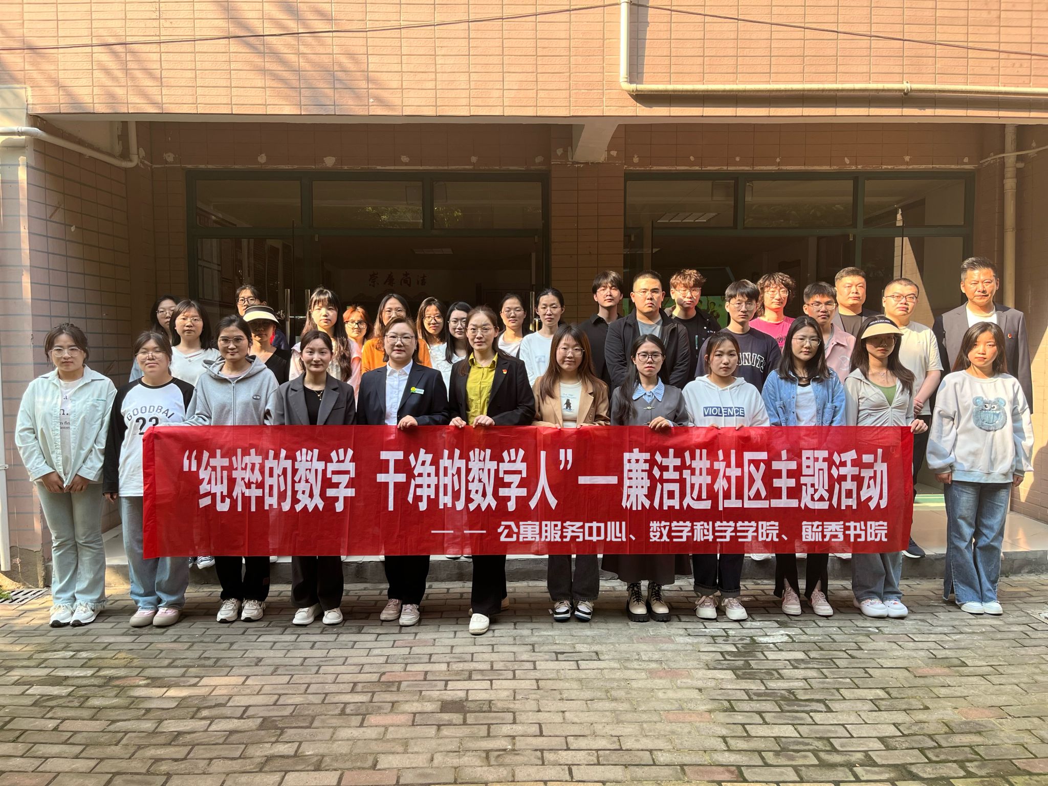 联合毓秀书院、公寓服务中心在毓秀书院开展“纯粹的数学,干净的数学人”廉洁进社区主题活动。公寓服务中心主任张洪、副主任马高强、行政经理李纪贤、公寓B区主管赵亚男、协管熊燕,数学科学成人导航