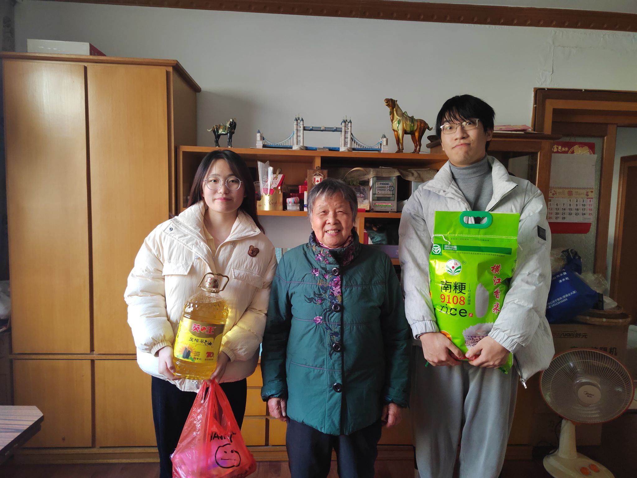 师生代表把学校关工委发给老教师的慰问品送到家中。尹老师向老教师们汇报了成人导航
