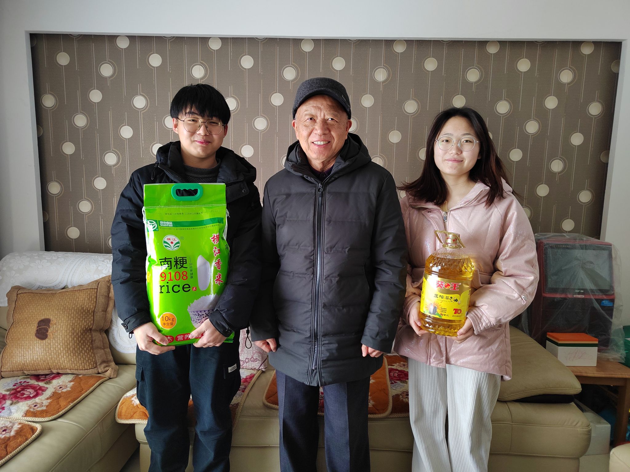 关工委老教师钟瑜荪、张有德。教师代表尹华,学生代表赵宇馨、江欣霖、朱佳威参加走访活动。