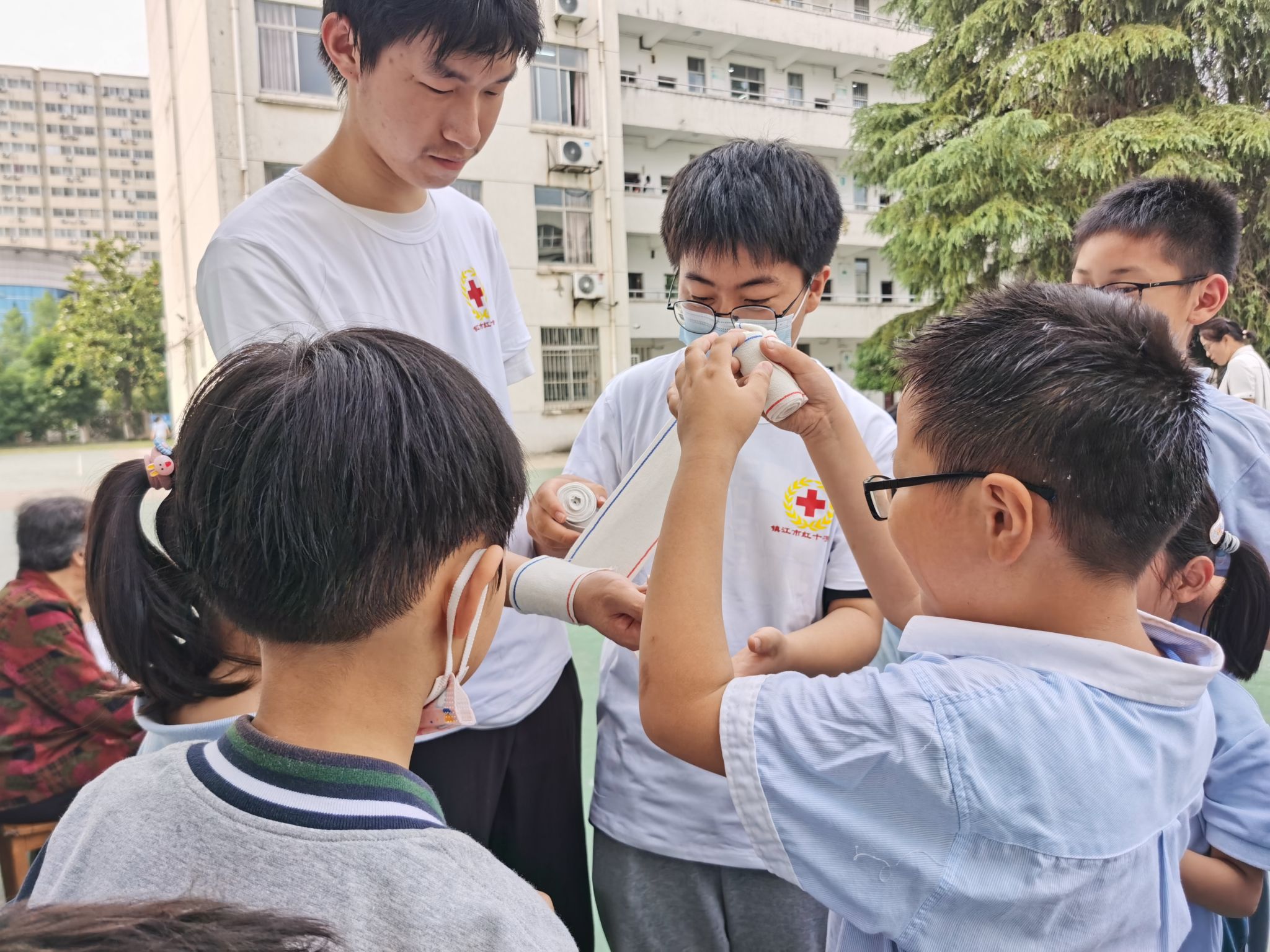 青志协积极动员在校生报名担任志愿者,并组织开展了相关业务培训。活动当日,志愿者首先现场讲解了心肺复苏的理论知识和操作要领,并使用假人模型进行演示,小朋友们围在志愿者身边认真听讲,并在志愿者手把手地细心指导下,亲身体验了心肺复苏的实操演练。随后,志愿者带领小朋友们用绷带、三角巾学习急救包扎的技能,大家兴致高涨,积极参与包扎练习,现场气氛活跃,其乐融融,大家共同度过了一段充实愉快的课后时光。