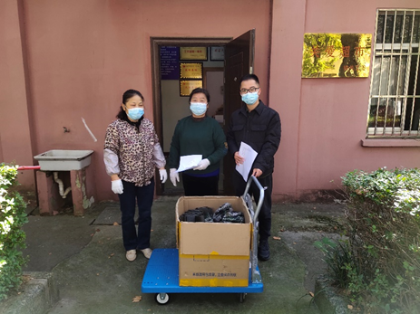 辅导员朱江涛老师和学生志愿者把这批爱心物资送到校关爱超市徐老师的手中。