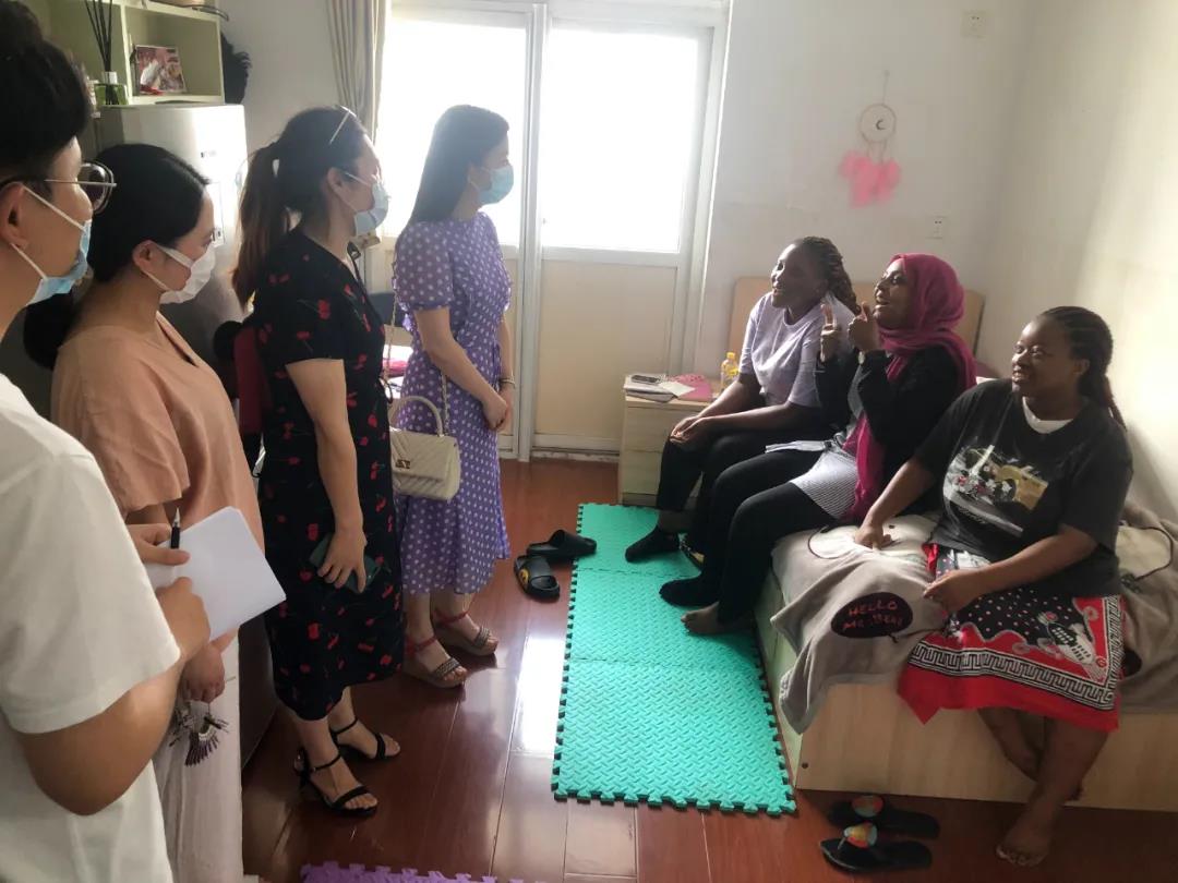 In addition, Cai Zhaohui, Vice Dean of the Jiangsu University Overseas Education College and deputy leader of the off-campus working group, led a team to visit the international students residing in Jingkou area.