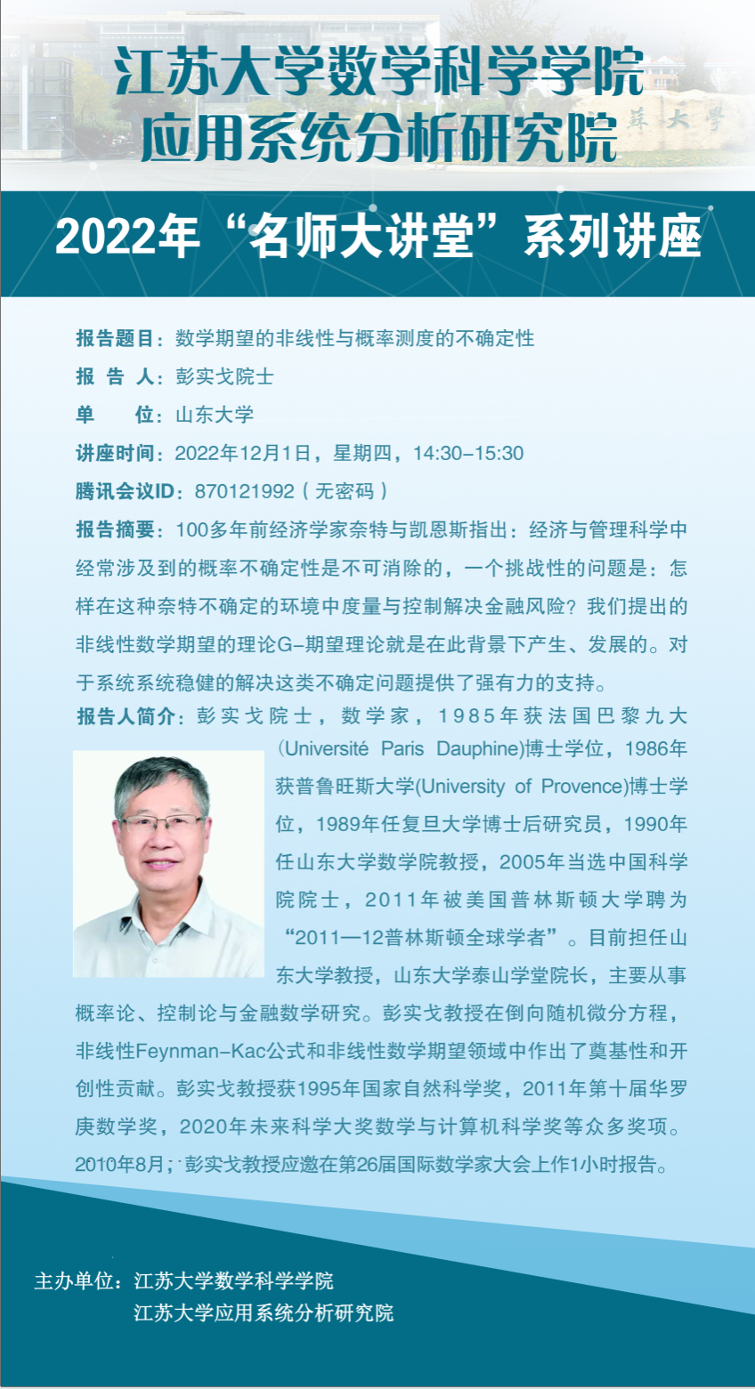 Academic Lecture of Professor Shige Peng