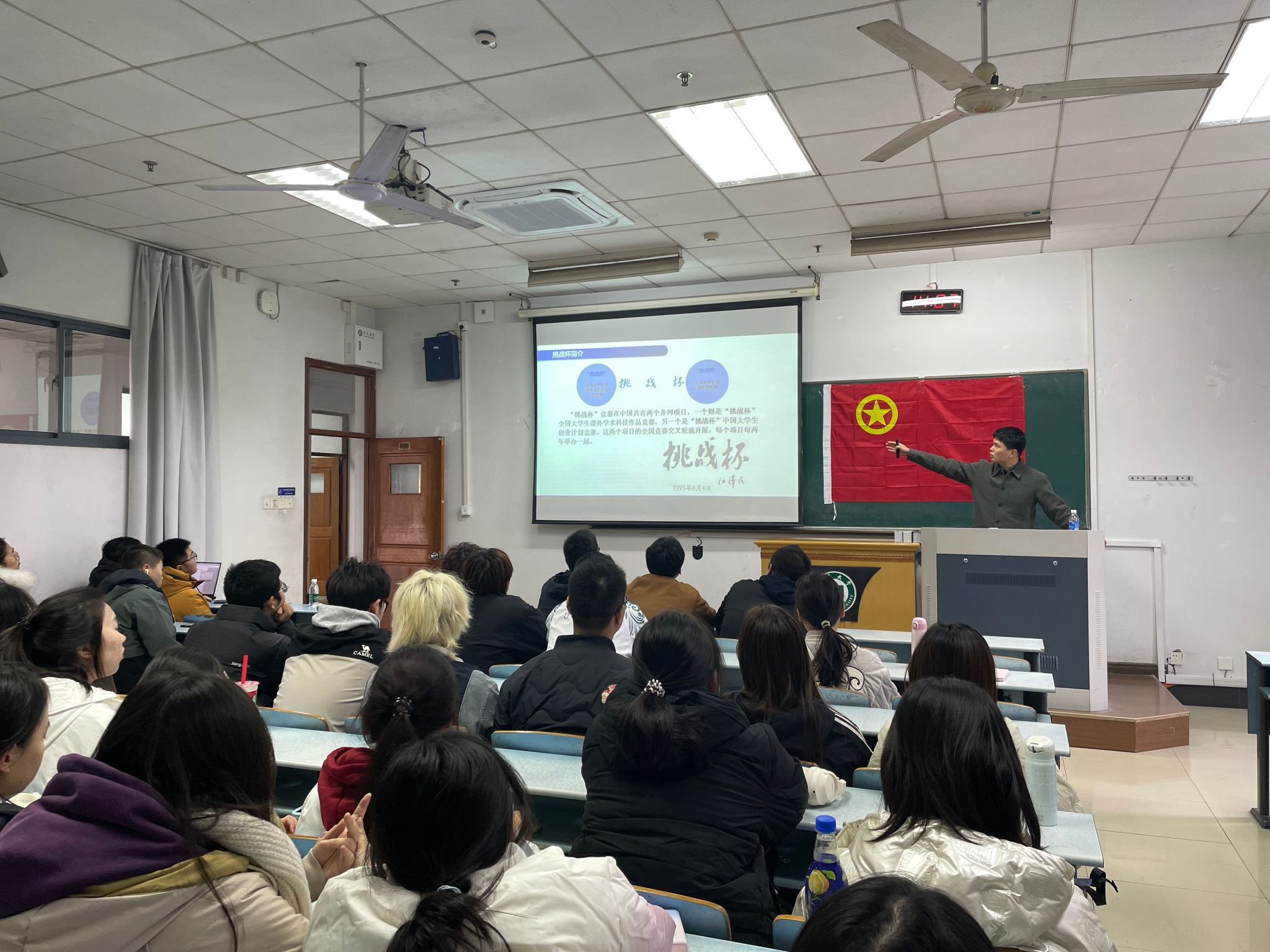 在三江楼202举办“挑战杯”赛事宣讲活动。本次活动特邀校团委科创部部长韩涉老师。宣讲由成人导航